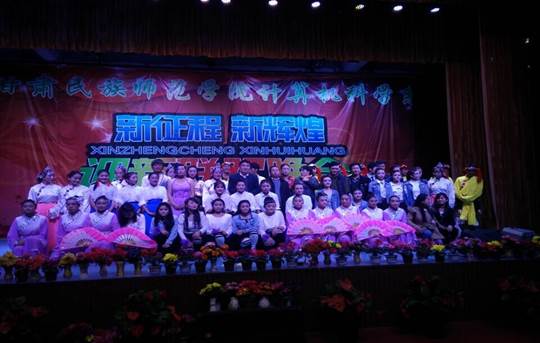2015年10月29日晚,计算机科学系在甘肃民族师范学院理科楼学术会堂成功举办了以“新征程 新辉煌”为主题的2015级迎新晚会。出席此次迎新晚会的主要领导老师有计算机科学系党总支书记闫宝华副教授、系主任赵俊生教授、系副主任兼副书记李雪梅老师、系副主任范景行副教授、香巴拉书院管理人员以及全系教职工、学生500多人参加了此次晚会。